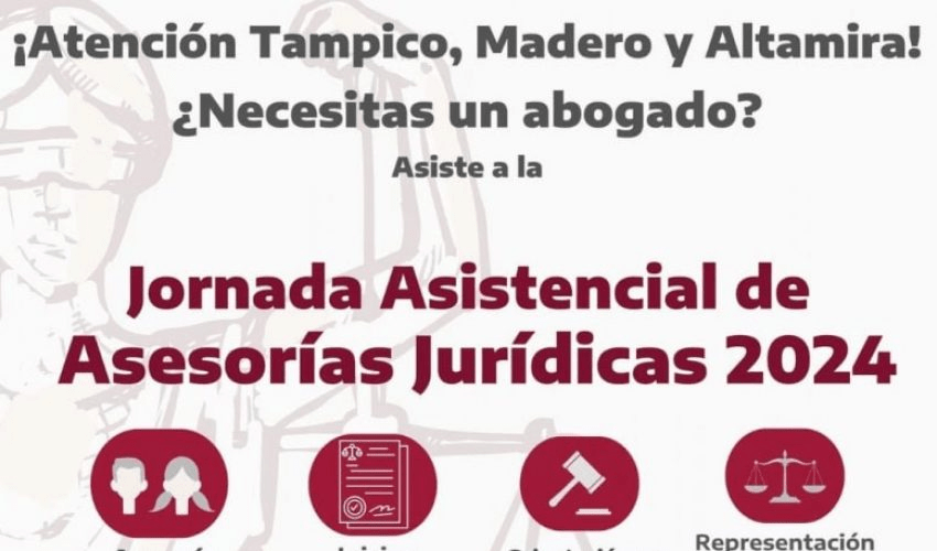 En esta jornada, abogados especializados brindarán asesoría jurídica gratuita en diversas materias, con el objetivo de garantizar el acceso a la justicia y proteger los derechos de todas y todos los tamaulipecos.