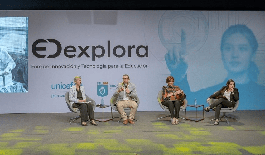 Junto a la secretaria de Educación de Tamaulipas, en el panel de inclusión digital participaron Leandro Folgar, presidente de Conectividad Educativa de Informática Básica para el Aprendizaje en Línea (Ceibal); Sofía Leticia Morales Garza, secretaria de Educación de Nuevo León, y Astrid Hollander, jefa de Educación en UNICEF México.