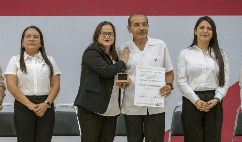 Por su parte, Karla Martínez, maestra galardonada y representante del gremio, agradeció a las autoridades por el reconocimiento recibido y exhortó a sus compañeras y compañeros a continuar con la misma pasión, compromiso y amor por la enseñanza.