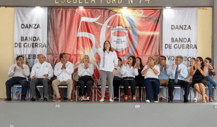 Ciudad Victoria, Tamaulipas.– En cinco décadas de existencia, la Escuela Primaria ‘Ford 74’ se ha distinguido por ser un ejemplo exitoso de disciplina, organización y educación de calidad, superando los retos que ha tenido enfrente, aseguró Lucía Aimé Castillo Pastor, secretaria de Educación de Tamaulipas, al encabezar la celebración del 50 aniversario de la institución.