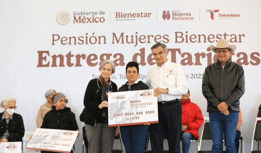 Junto al delegado de Bienestar Federal, Luis Lauro Reyes Rodríguez, el gobernador entregó la tarjeta de la Pensión Mujeres Bienestar a seis representantes de Tampico, Madero y Altamira, y aseguró que este programa es un acto de justicia a las mujeres de más de 60 años por su dedicación al cuidado de sus familias.