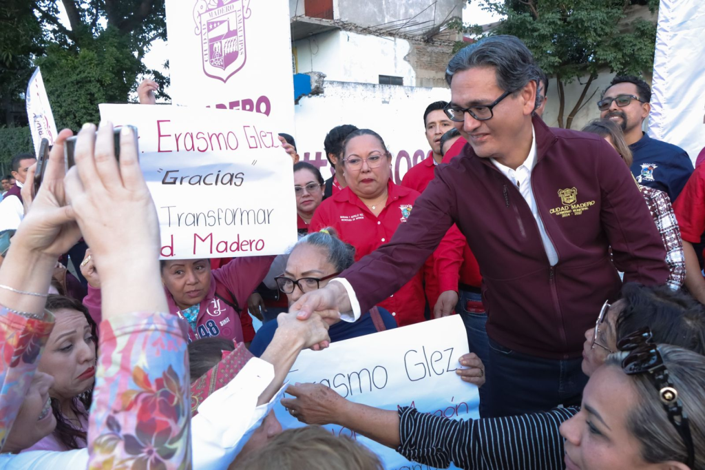 Erasmo González, que estuvo acompañado por su esposa Dunia Marón Acuña presidenta del sistema DIF Ciudad Madero; reconoció el apoyo de Petróleos Mexicanos una empresa de la cual nos sentimos muy orgullosos, por su aportación para que se haga posible esta reposición de pavimentos, ante la presencia del gerente general de la Refinería Madero Abner Roberto Santamaría Hidalgo.