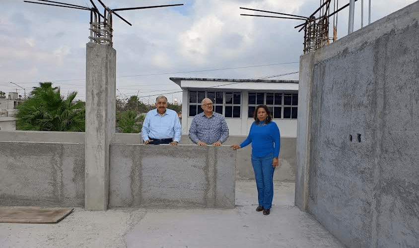 Reynosa, Tamaulipas.– Directivos del Colegio de Bachilleres del Estado de Tamaulipas (COBAT) supervisaron los avances en la construcción de nuevas instalaciones en el plantel 22 de Reynosa, que constan de tres aulas, módulos sanitarios y una cancha deportiva, informó su director general, Rubén Ely Ramírez Rivas.