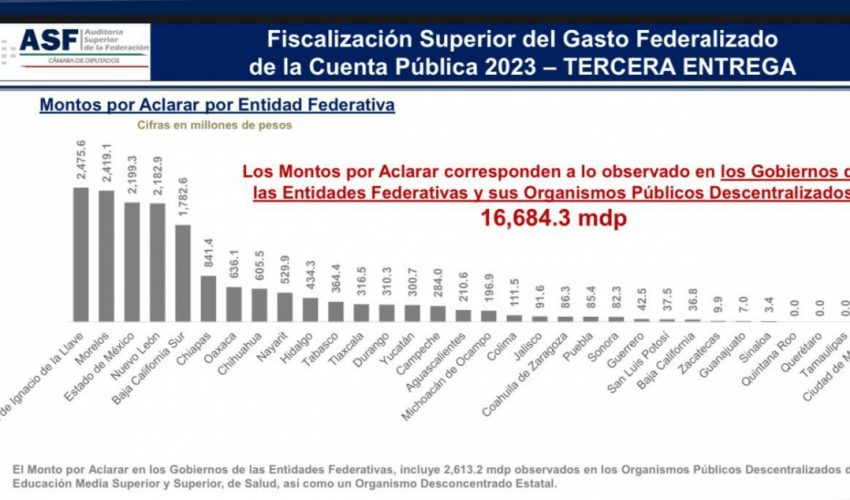 Ciudad Victoria, Tamaulipas.- Ocupa Tamaulipas el primer lugar en el manejo de recursos públicos en la tercera entrega de informes de la Cuenta Pública 2023, lo anterior, lo ha dado a conocer el auditor superior de la Federación, David Rogelio Colmenares Páramo ante la Cámara de Diputados del Congreso de la Unión.
