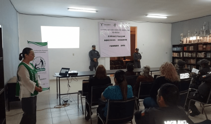 Reynosa, Tamaulipas.- Como parte del programa de capacitaciones orientadas a los temas identificados en el Diagnóstico Nacional de Supervisión Penitenciaria (DNSP), personal del Centro de Ejecución de Sanciones (CEDES) de Reynosa recibió una instrucción por parte de la Comisión de Derechos Humanos del Estado de Tamaulipas (CODHET).